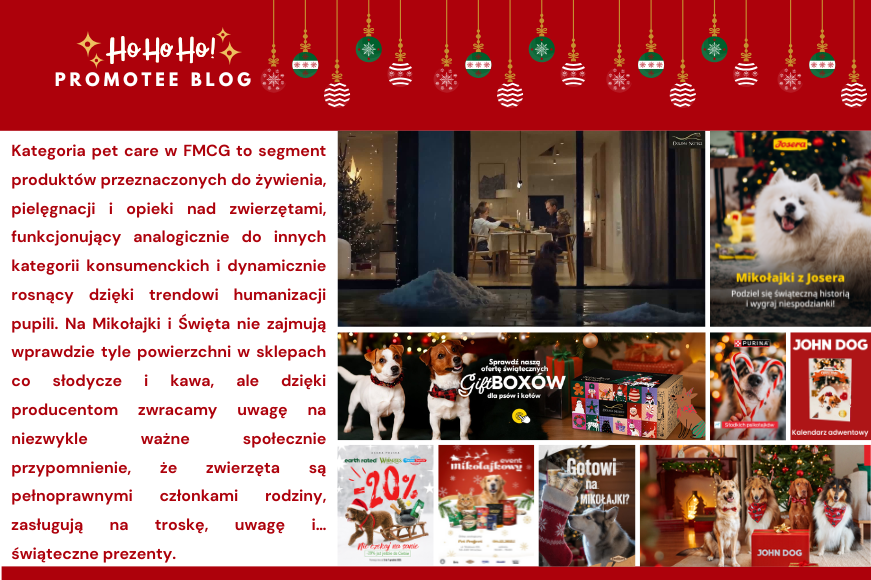 W ofercie marek pet care są kalendarze adwentowe, gift boxy, rabaty na wszystkie produkty czy też dedykowane świąteczne linie produktowe. Przeglądając oferty marek pet care nie sposób oprzeć się wrażeniu, że ta kategoria właśnie dogoniła stylistykę „ludzkich” kategorii promowanych przed świętami, od eleganckich opakowań po emocjonalny storytelling, wszystko wygląda jak pełnoprawna część świątecznego świata FMCG.