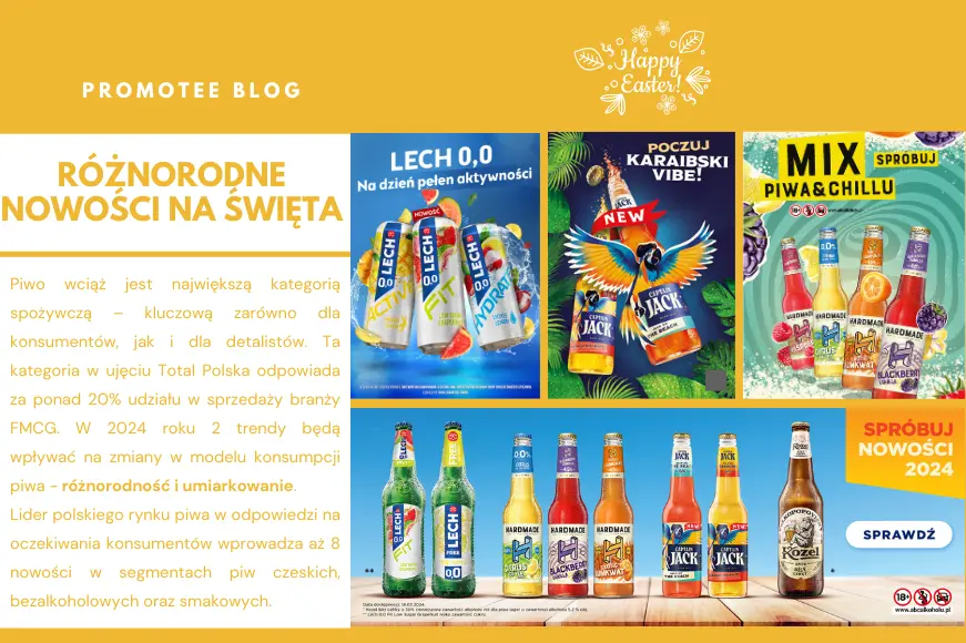 Ta kategoria w ujęciu Total Polska odpowiada za ponad 20% udziału w sprzedaży branży FMCG. W 2024 roku 2 trendy będą wpływać na zmiany w modelu konsumpcji piwa - różnorodność i umiarkowanie.