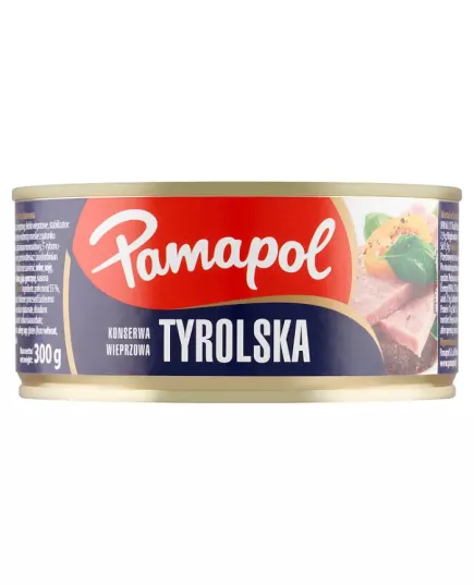 mięso wieprzowe 55%, woda, tłuszcz wieprzowy, skórki wieprzowe, stabilizator: trifosforan, substancja zagęszczająca: przetworzone wodorosty morskie z gatunku Eucheuma, sól, aromaty, wzmacniacze smaku: glutaminian monosodowy, 5'-rybonukleotydy disodowe, białko zwierzęce kolagenowe wieprzowe, przeciwutleniacz: izoaskorbinian sodu, glukoza, substancja konserwująca: azotyn sodu