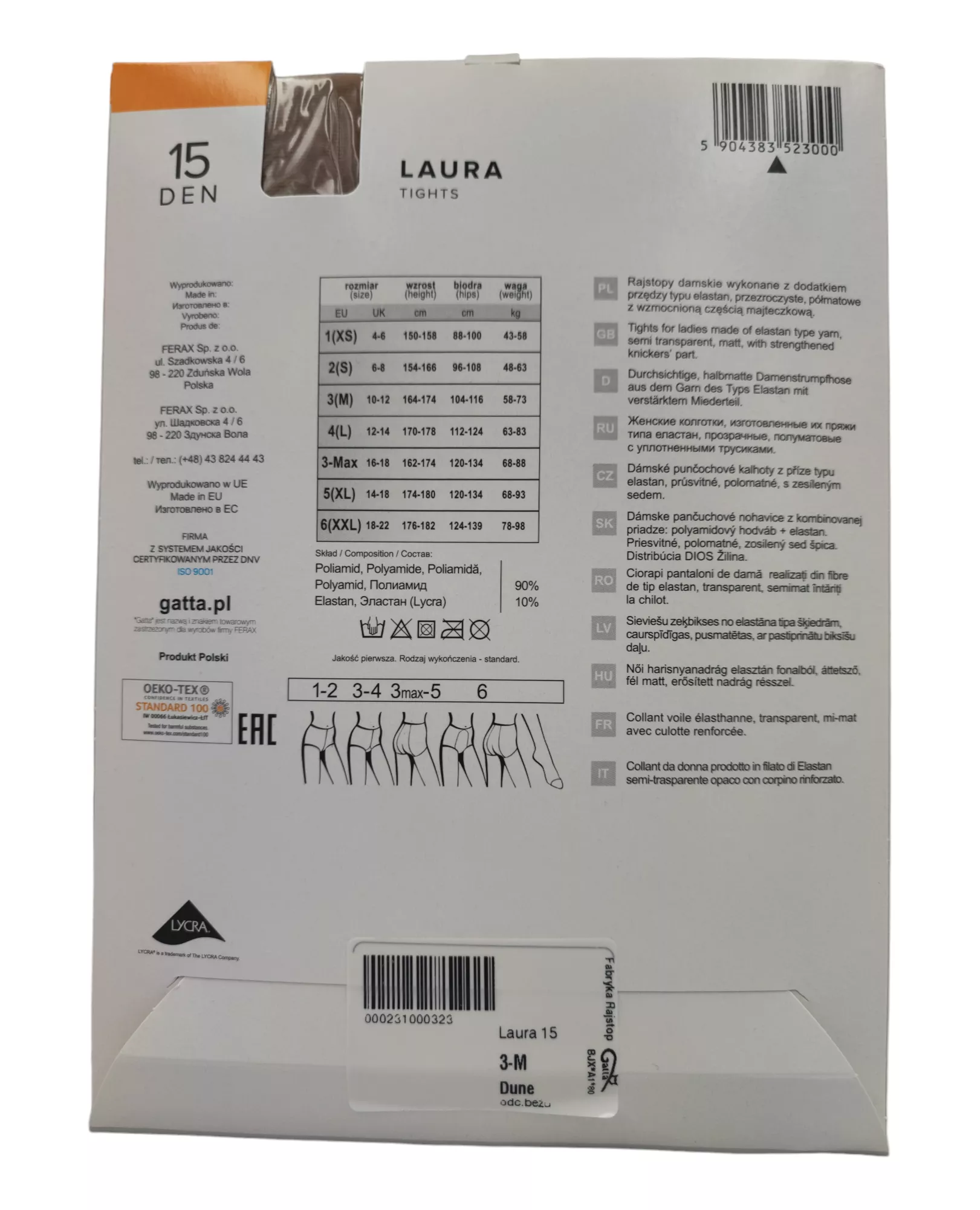 Klasyczne, uniwersalne rajstopy Laura 15 DEN to najpopularniejszy spośród wszystkich produktów marki Gatta.