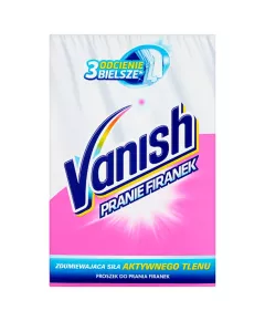 Dane produktowe Vanish Proszek do prania firanek 400 g (6 prań) Vanish Proszek do prania firanek 400 g Vanish do prania firanek to superskuteczny produkt, który dzięki sile aktywnego tlenu nie tylko pierze ale też odzyskuje biel zszarzałych firanek - nawet o 3 odcienie.* Usuwa zabrudzenia...
