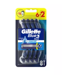 Dane produktowe Gillette Blue3 Plus Comfort, maszynki jednorazowe dla mężczyzn, 8 sztuk Gillette Blue3 to najczęściej kupowana na świecie maszynka jednorazowa z 3 ostrzami. Te maszynki do golenia dla mężczyzn wyposażone są w ostrza dopasowujące się do konturu twarzy oraz w technologię...