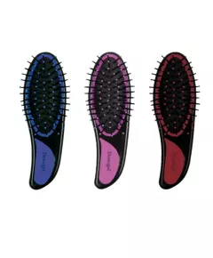 Szczotka przeznaczona do włosów długich i grubych. Doskonała do mocno splątanych włosów, przy tym delikatna, przeciwdziała strzępieniu się końcówek. Nylonowe igły, o zaokrąglonych końcach, mocno osadzone zostały na gumowej poduszeczce. Posiada gumowy, ergonomiczny uchwyt. Wymiary: długość...