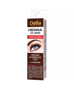 Henna do brwi - tradycyjna 4.0 Brązowy DELIA COSMETICS 2g Tradycyjna henna w proszku jest doskonała do samodzielnego farbowania brwi. Wyjątkowo łatwa aplikacja! Jednorazowe opakowanie zawiera dwie saszetki. Wystarczy wymieszać ich zawartość do uzyskania jednolitej, kremowej konsystencji, a...