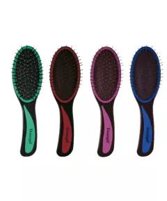 Szczotka do włosów długich. Doskonała do mocno splątanych włosów. Zapobiega strzępieniu się końcówek. Szczotka jest delikatna, nie wyrywa włosów. Plastikowe igiełki zakończone są zabezpieczającymi kuleczkami. Wymiary: długość 21,5 cm, średnica 6 cm.  Dostępne w 4 kolorach: zielony,...