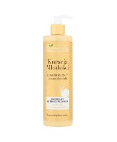 Dane produktowe Bielenda Kuracja Młodości Odżywczy balsam do ciała 400 ml Odżywczy balsam do ciała bazuje na absolutnym odkryciu kosmetycznym ostatnich lat: ekstrakcie ze śluzu ślimaka, który zapewnia głęboką odbudowę i regenerację skóry. Dodatkowa zawartość złota 24K oraz oleju marula...